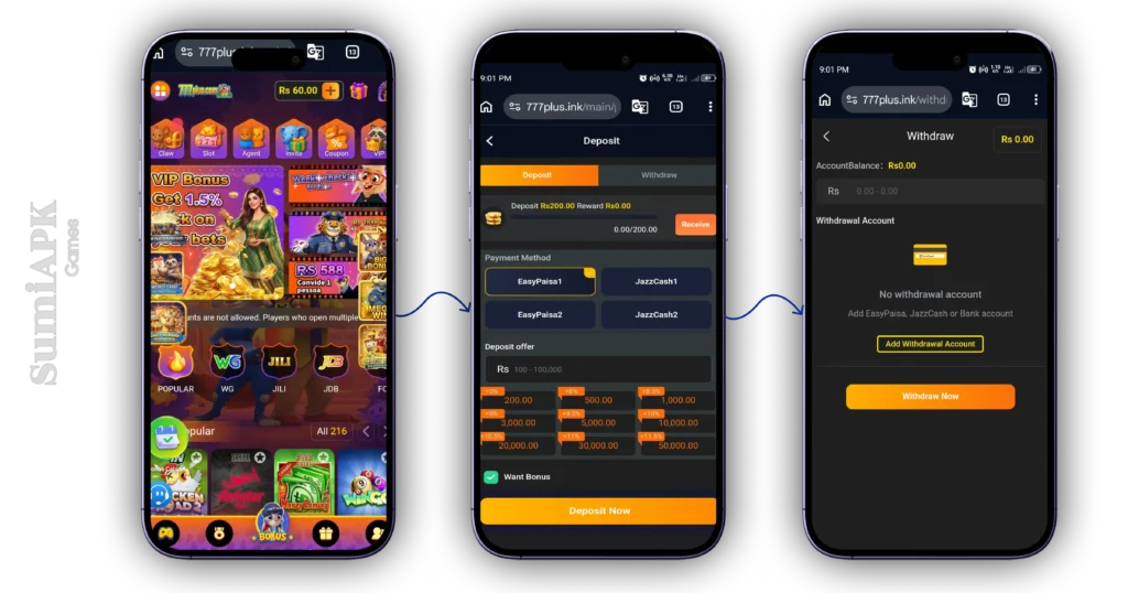 The 777Plus Game app provides a secure system for deposits and withdrawals. Users can trust it as a secure payment gaming app, knowing their money and rewards are well-protected.